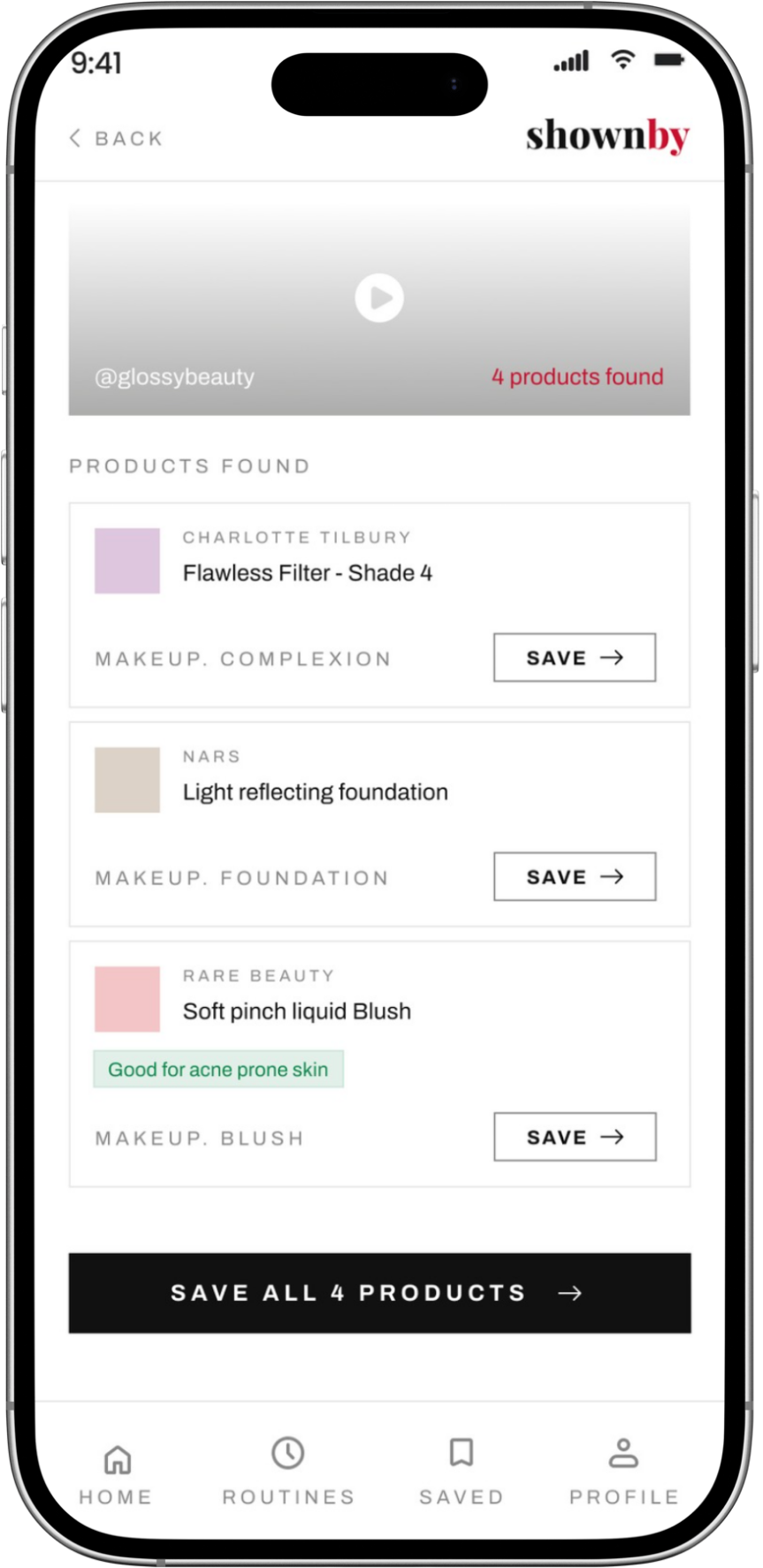Watch a Video on TikTok, Instagram or Youtube. Tap share > Shownby and we instantly identify every beauty product and find the across all major retailers.